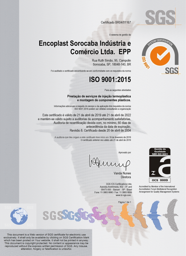 Todas as atividades desenvolvidas na Encoplast são voltadas para a plena satisfação do cliente, entendendo e atendendo seus requisitos, CERTIFICADO ISO 9001:2015 desde 2004.